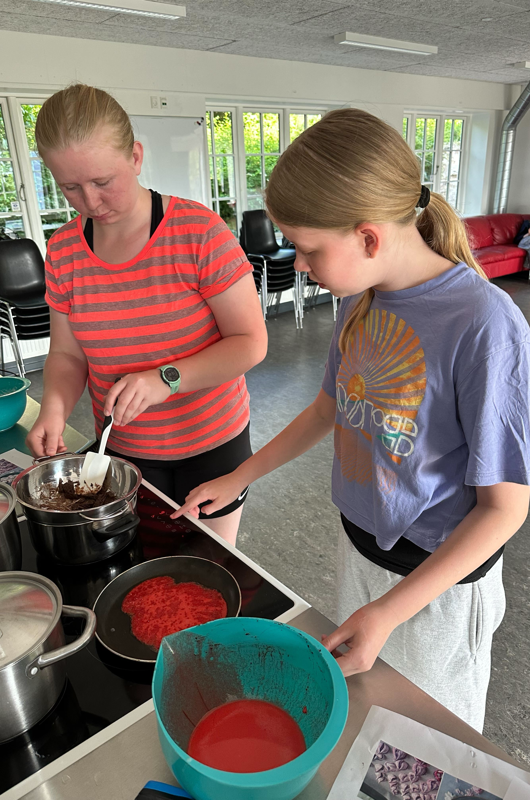 Vi ruller, bager, steger og smager os gennem farverige retter fyldt med smag. Hver gang arbejder vi med nye råvarer og opskrifter, så du får mulighed for at prøve mad fra forskellige lande og kulturer.