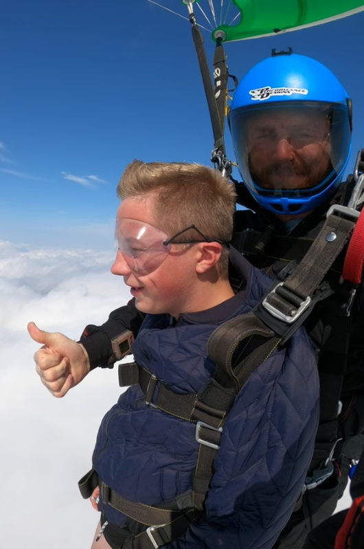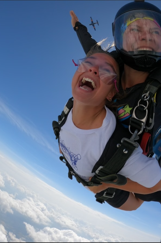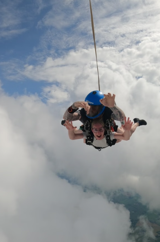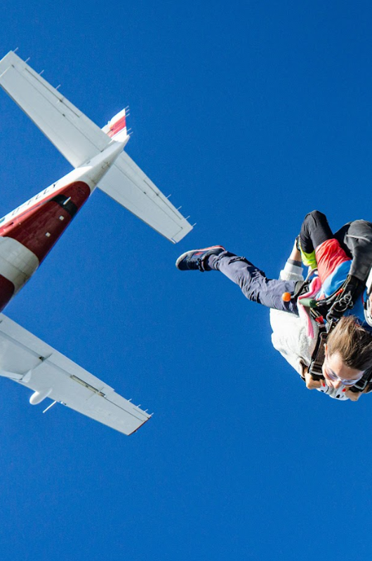 Du sidder i flyet – spændt og med adrenalinen pumpende. Døren åbner, og vinden rammer dig. Du kigger ud… og så springer du! I de første sekunder falder du frit – hurtigt, vægtløst og med et kæmpe sug i maven. Det er intenst, vildt og fuldstændig ubeskriveligt.